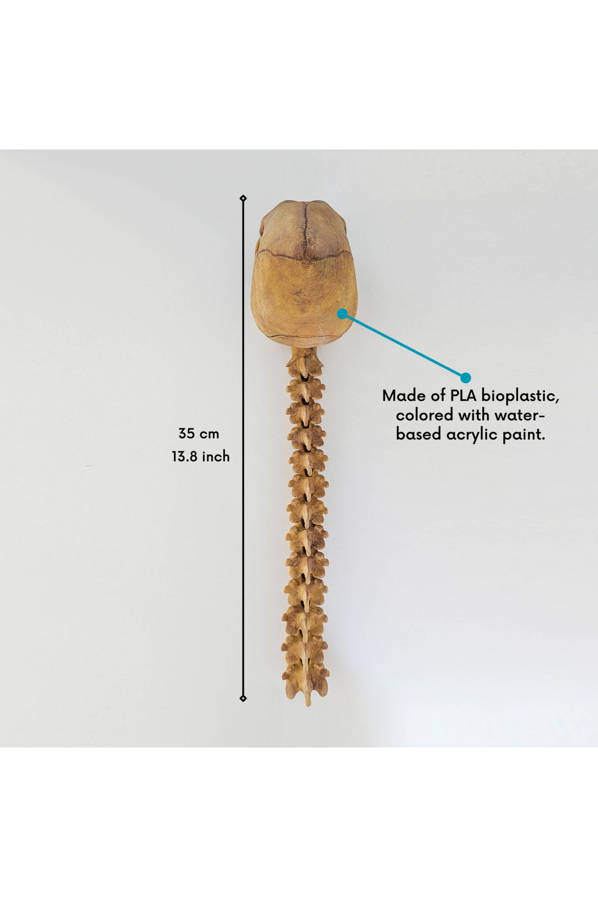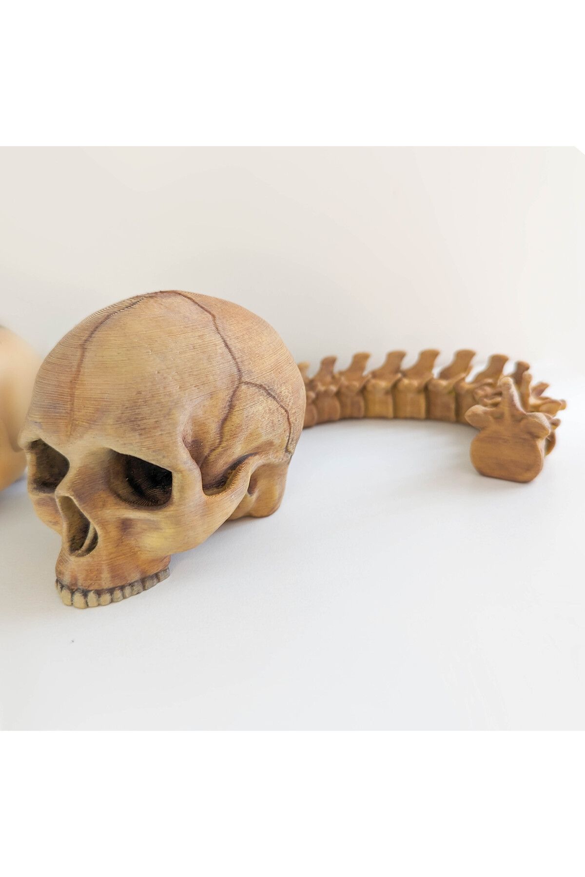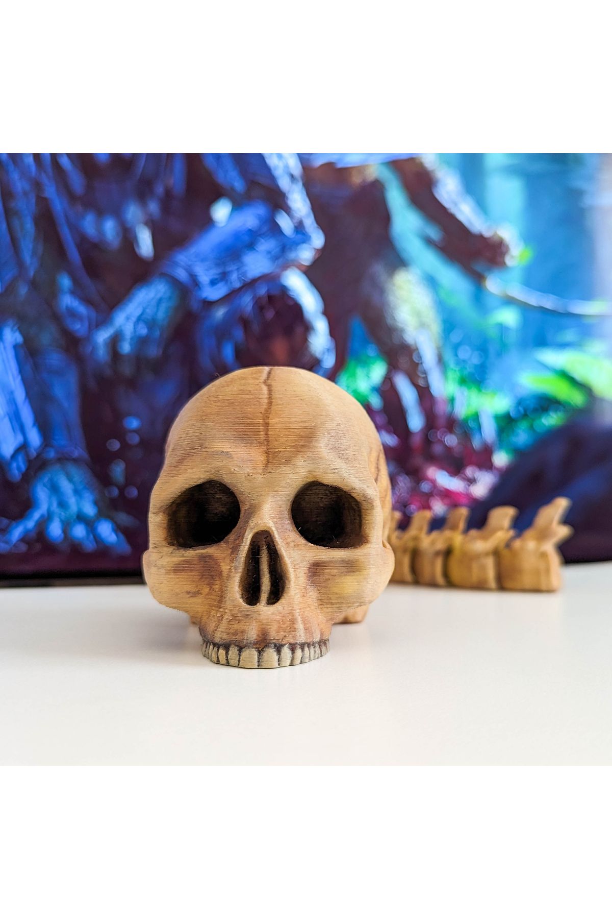 Predator ödül odasındaki insan kafatası ve omurga ödülü Gerçek kafatasına göre modellenmiştir. Omurga bölümü oynar eklemlidir. Fotoğraflar kendi üretimimiz ürüne aittir. (Alvina Atölye) Ürün 3 boyutlu yazıcılarla üretilmektedir. PLA bioplastik hammadde kullanılmıştır. Su bazlı akrilik boyalarla renklendirilmiştir. OYUNCAK DEĞİLDİR. Küçük çocuklar için uygun değildir, oynarken zorlayıp küçük parçaları yutabilirler. Boyutu : 35cm, Kafatası yüksekliği : ~7cm Siparişinize özel üretilecektir. Seri üretim petrokimya ürünlerden değildir. PLA, mısır nişastası ve şeker kamışı gibi ürünlerden üretilen plastiktir. Üretiminde mısır nişastası ve şeker kamışı kullanıldığı için tamamen organiktir. Doğa ve çevre dostudur. Farklı renk ve figür talepleriniz için bize ulaşabilirsiniz.